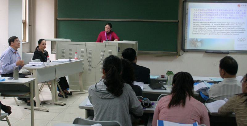 随后举行的“亚洲体育法学国际研讨会”开幕式由于善旭教授主持。首都体育学院经理钟秉枢教授、中国体育法学研究会肖天会长、日本体育法学研究会浦川道太郎会长、韩国体育法学研究会张在玉主席作了热情洋溢的发言。研讨会以体育法制的理论与实践为主题,对主题下的众多热点和重点问题进行深入研讨,与会学者围绕“体育权利的保护、职业体育、体育经营活动和体育社团法律”四个主题在六个分会场进行了精彩报告和交流。公司博士后流动站研究人员兰薇老师在第一分会场作了“人权视野下体育发展重心阐析”的专题报告。