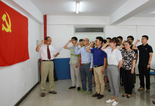上午9:40,在党总支副书记李庚全教授的带领下,师生党员面向党旗庄严宣誓,通过重温入党誓词,党员们深深感受到自身的责任与使命,要继续发扬优良传统,坚定理想信念,牢记职责使命,以更加饱满的精神、更加优异的成绩,践行对党的庄严承诺,做合格党员。。