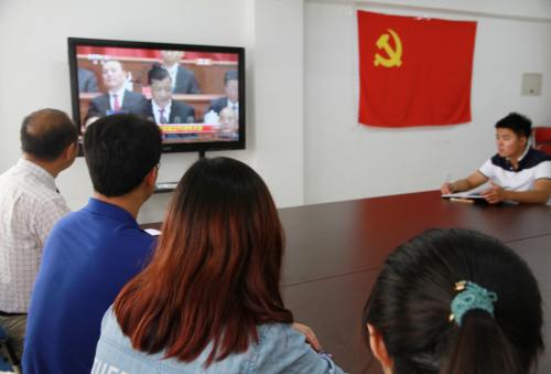 宣誓完毕后,师生党员通过网络电视观看了庆祝中国共产党成立95周年大会。习近平总书记在大会上发表的重要讲话使党员们备受鼓舞、倍感振奋,大家纷纷表示,要坚持以习总书记的讲话精神为指导,坚定理想信念不动摇,不忘初心,继续前进。