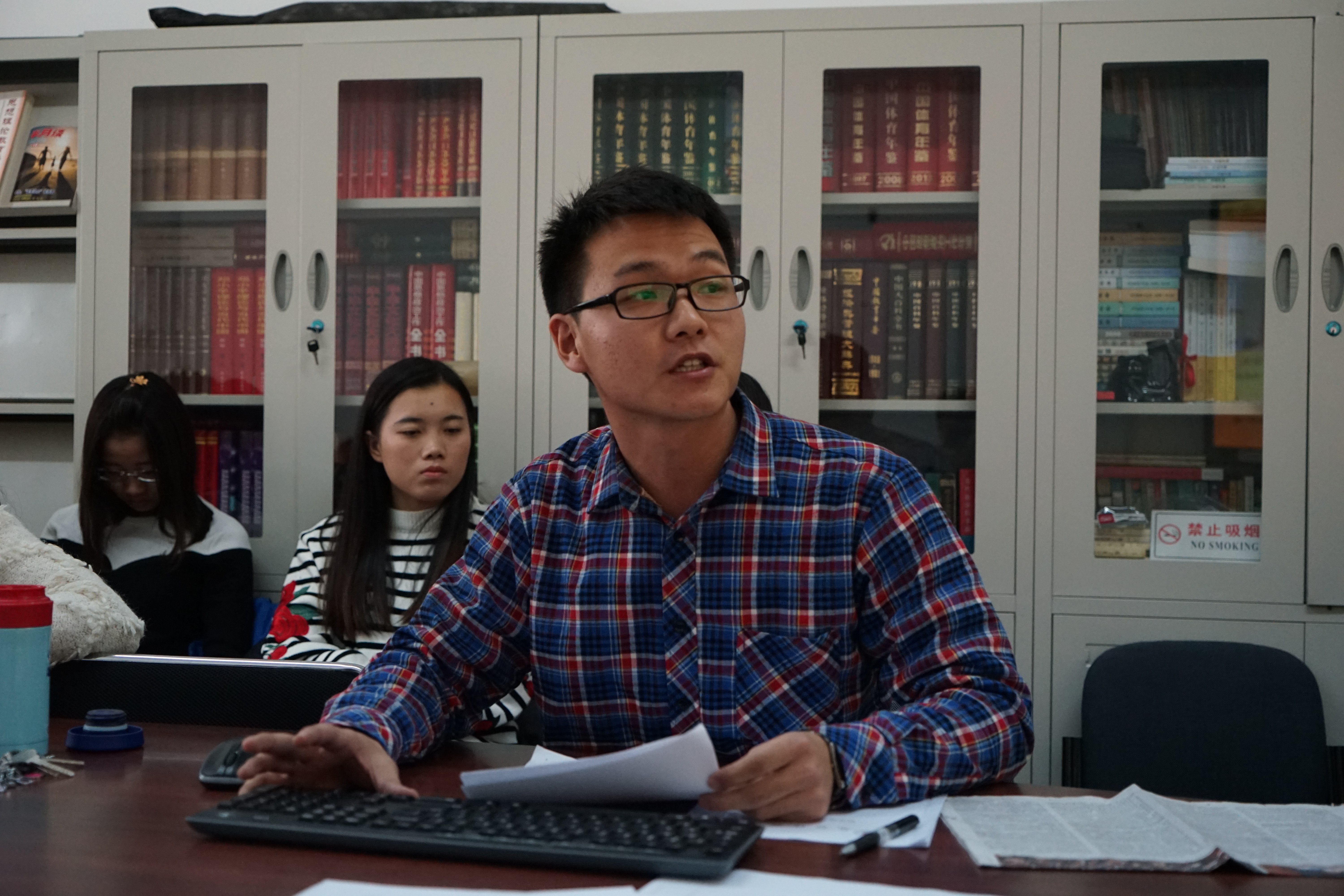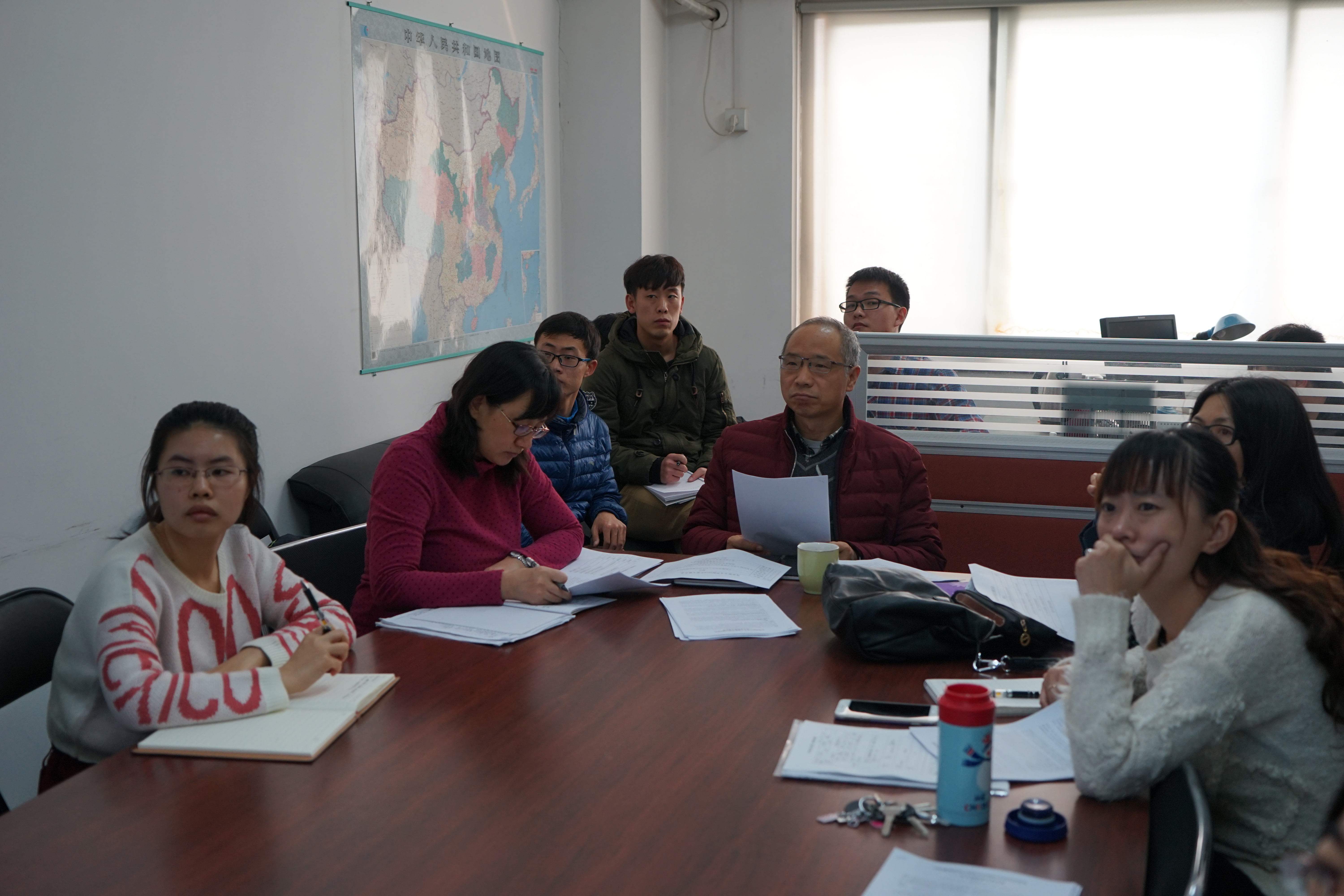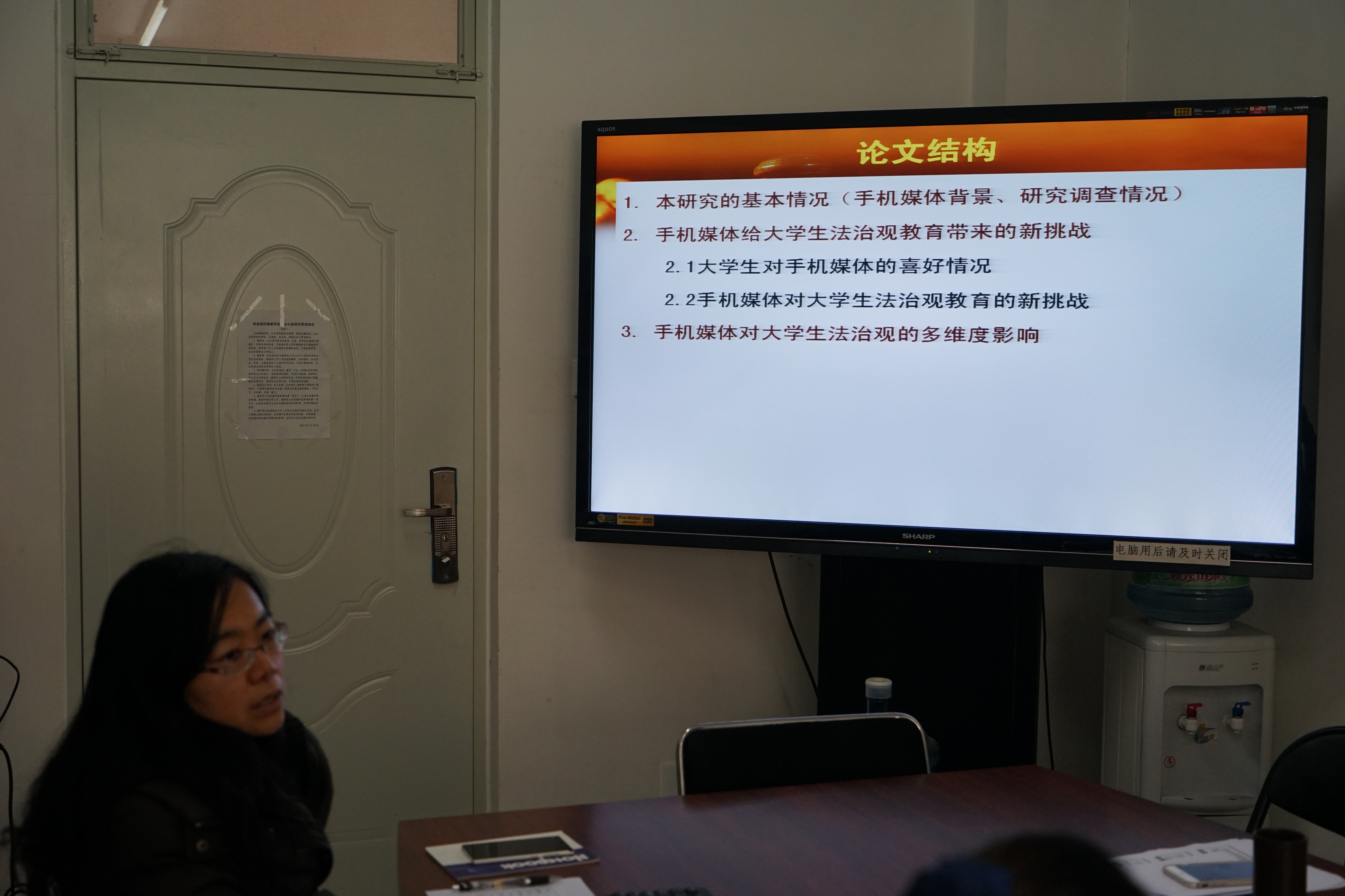 会议由李庚全教授主持,首先向大家说明了科研能力的重要性,要求大家多钻研,多写文章,接着进入研究成果汇报阶段。谢晓雪老师的报告题为《手机媒体时代老员工法治观的培养路径研究》,论文以北体大为例,论述了移动互联网给老员工法治观的培养带来的多方面影响,并提出了整合资源建立一个开放、动态、安全的校园法制教育网络体系等五条建议。李慧华老师以《新媒体背景下基于移动互联技术的思政课PI教学法创新研究》为题,展示了目前移动端的PI教学法在课堂中的应用情况,并提出了未来移动互联技术对教学方式的影响的前瞻性思考。随后,张莉媛、许晴、范博华、王文星、鹿文彬等五位同学也就各自的题目做了精彩的报告,报告结束后,评委分别对论文的题目、内容提出了修改建议。
