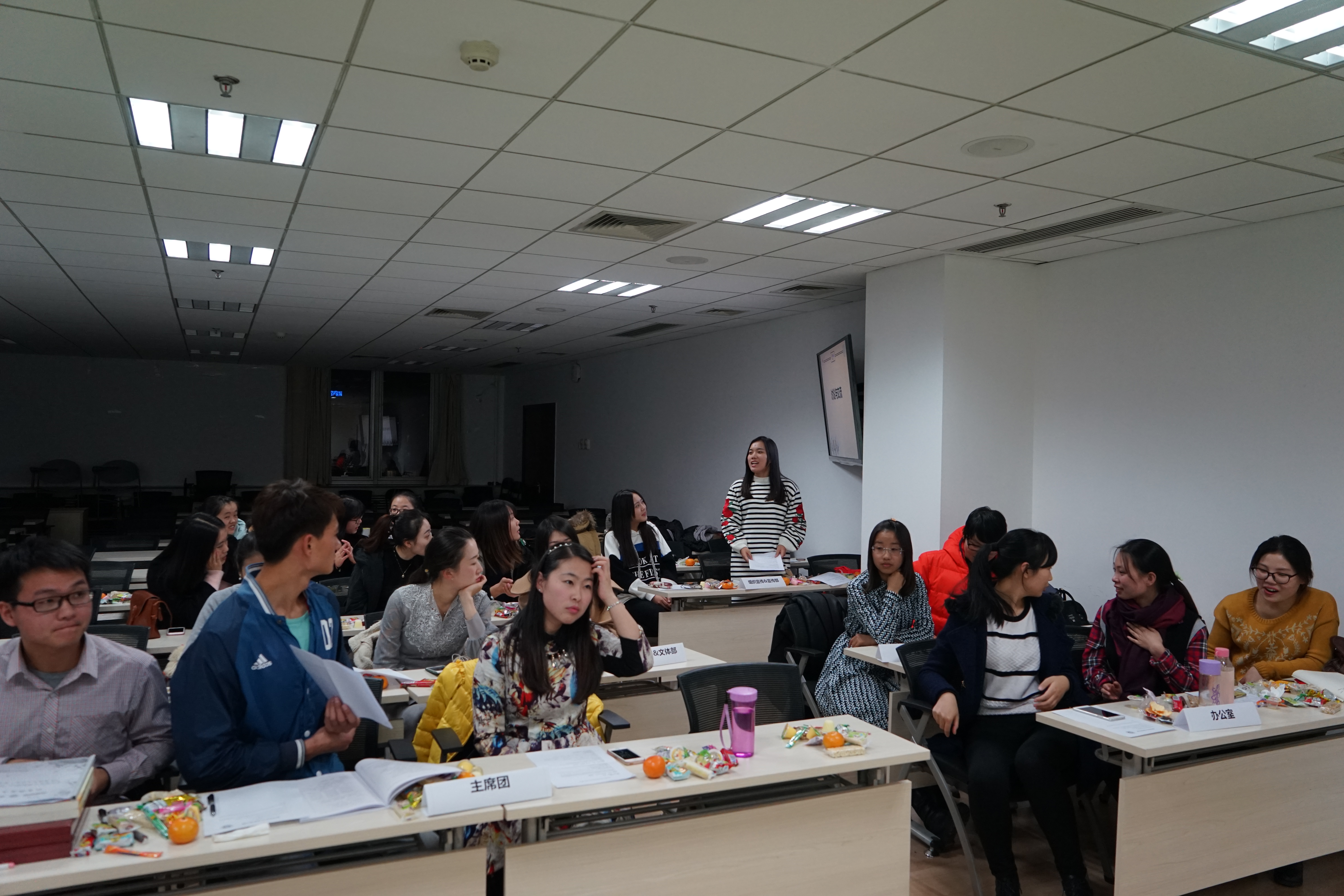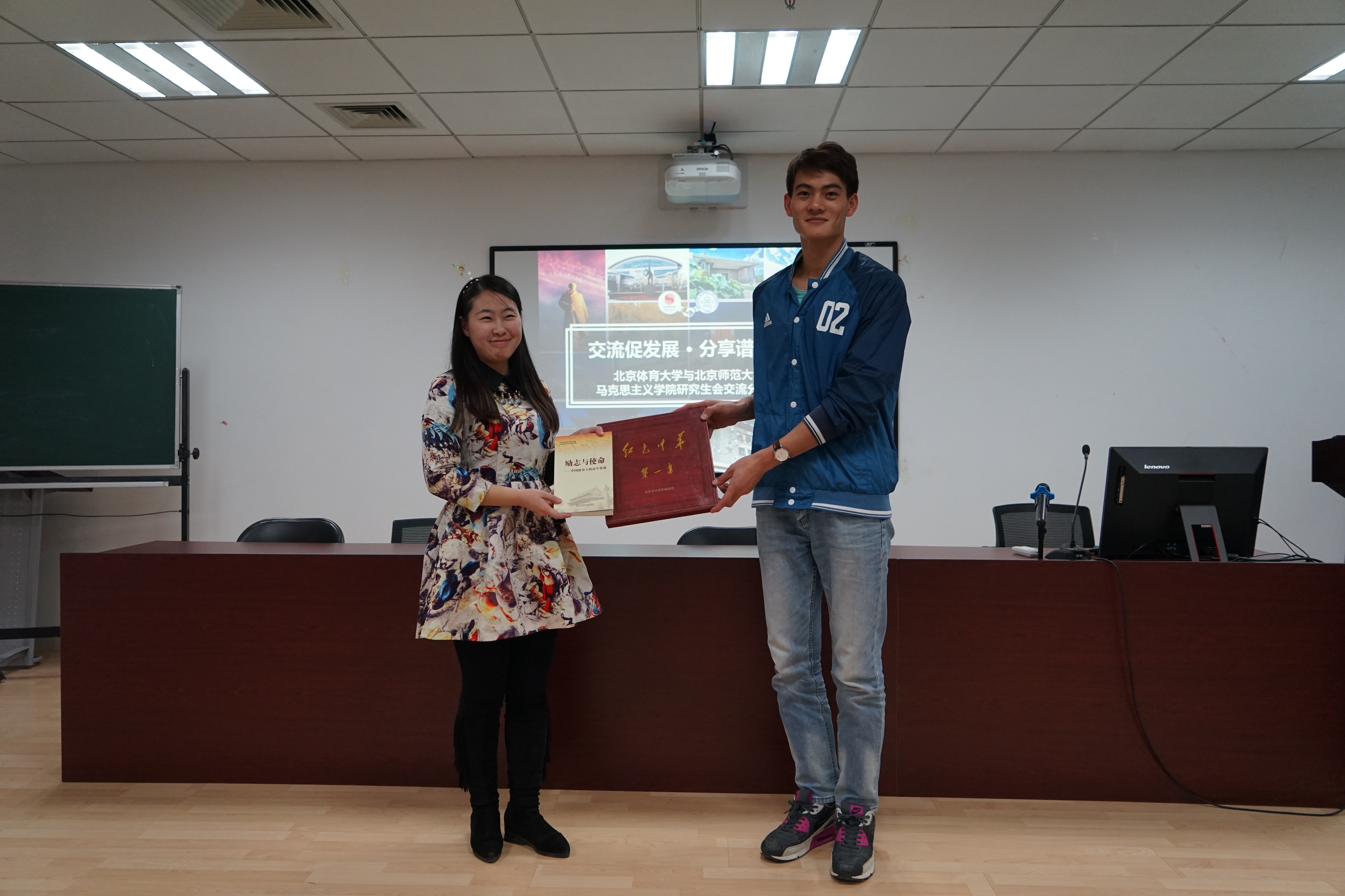 会上吴艳桥首先对北体研会各部门的职能与分工、组织活动进行了简明介绍,表达了希望双方加强沟通了解的愿望,张雯介绍了北师马院研会的组织架构、制度建设等情况,范博华组织全体人员观看304永利集团304永利集团宣传片,发言感谢北师同学的精心筹备和热情接待,表明北体马院此次交流分享会的学习态度,希望可以与北师马院研会互相交流学习,架起沟通的桥梁;随后各部部长及干事相继进行自我介绍,各部门间开展热烈的讨论和交流,互相分享各自的工作经验,期间安骁和官晓菲分别代表双方表演了精彩的节目,最后双方代表互赠礼物,全体人员合影留念,此次交流分享会在和谐友好的氛围中圆满结束。