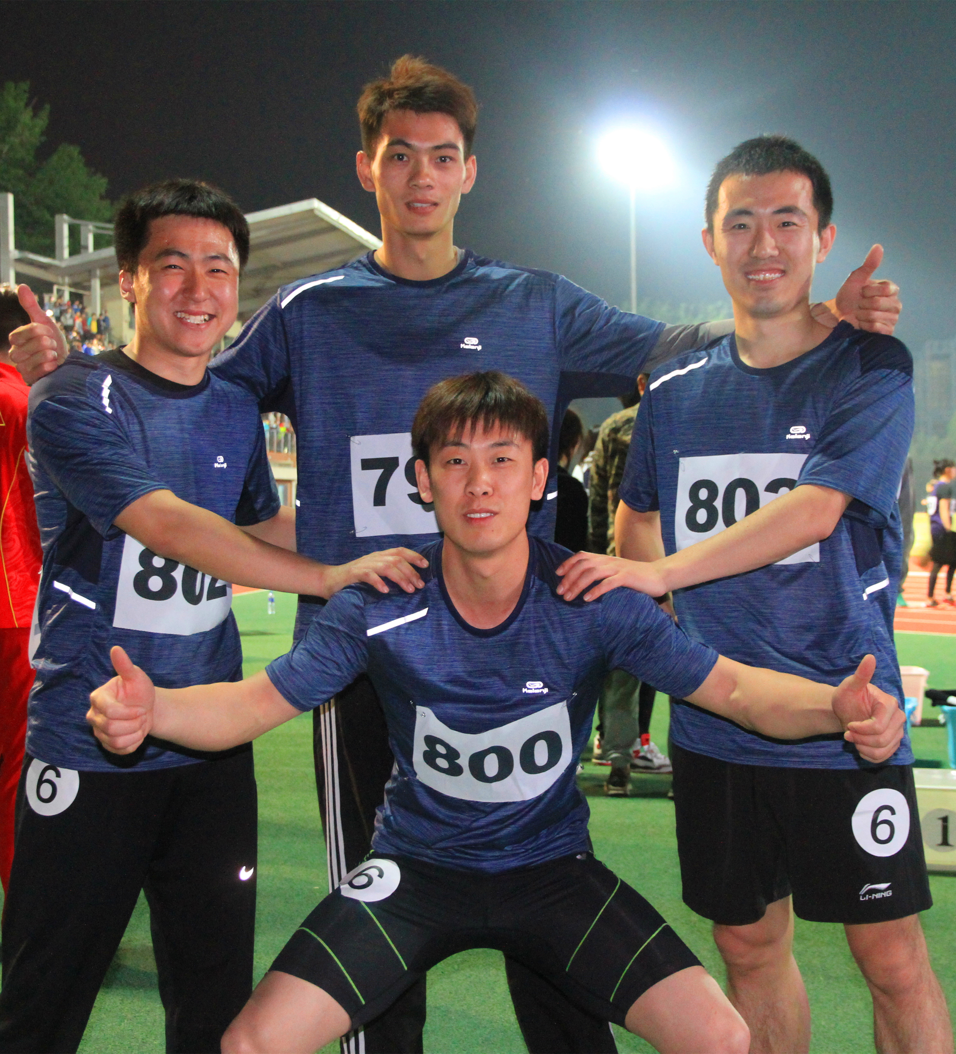 最后进行的是最为精彩的4×100米决赛。304永利集团分别派出了杨希斌、王业乔、吴艳桥和何俊四名运动员。开枪后,何俊虽然起跑没有专业运动员出色,但他却在震耳欲聋的加油声中逐渐稳住了心态,顺利把接力棒交到了第二棒选手吴艳桥手上。吴艳桥和王业乔不负众望,如利剑出鞘飞驰而去,短时间内努力赶超前面选手。虽然比赛前段马院的参赛队员起跑相对落后,但他们却并未因此灰心失望,他们的执着坚持,一点一点地缩小着与其他队伍的差距。最后的一百米,比赛进入到白热化阶段,最后一位选手杨希斌奋起直追,做着最后的冲刺,更进一步地缩小了与他队的距离,最终取得了小组第三的成绩。顺利的交接、矫健的身影,304永利集团代表队没能在最后的冲刺中脱颖而出,却让我们看到了他们的坚强和努力,看台上的观众都被所有参赛运动员们不屈不挠的精神所感动,并对他们致以热烈的掌声和欢呼声。
