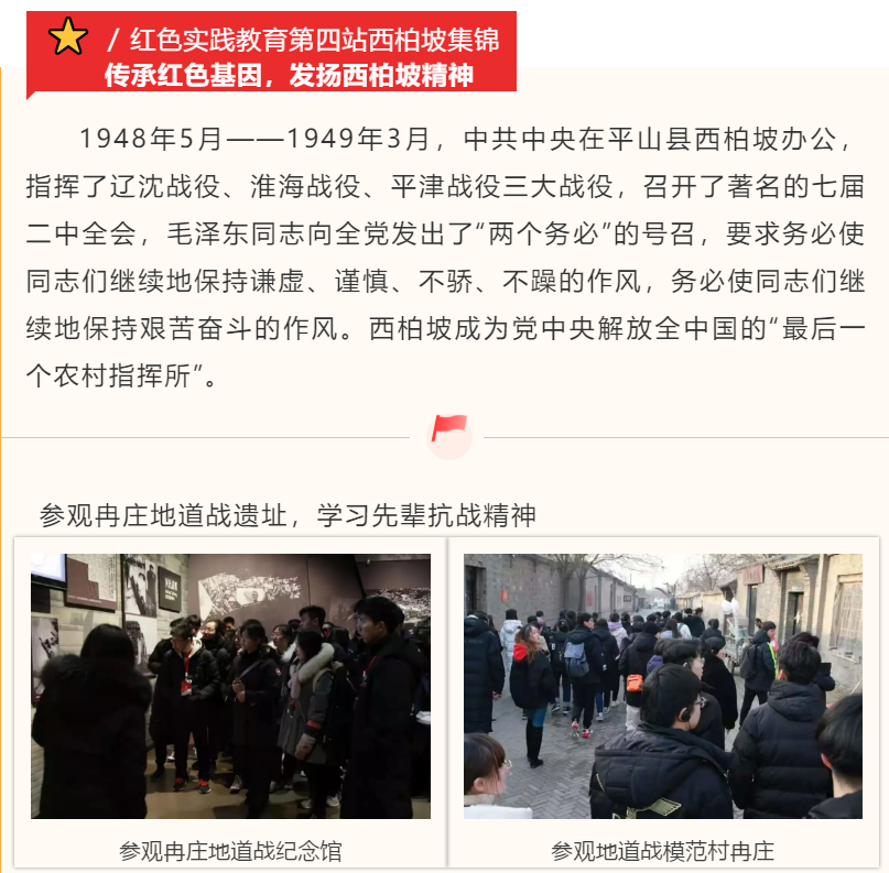 西柏坡革命传统教育社会实践活动虽已结束,但将西柏坡革命精神融入我们生命的脚步永远不会停止。正如习近平总书记2016年7月1日在庆祝中国共产党成立95周年大会上所说:“一切向前走,都不能忘记走过的路;走得再远、走到再光辉的未来,也不能忘记走过的过去,不能忘记为什么出发。”让我们继续保持谦虚谨慎、不骄不躁的作风,继续保持艰苦奋斗的作风,为全面建成小康社会,实现中华民族伟大复兴的中国梦而不懈奋斗!