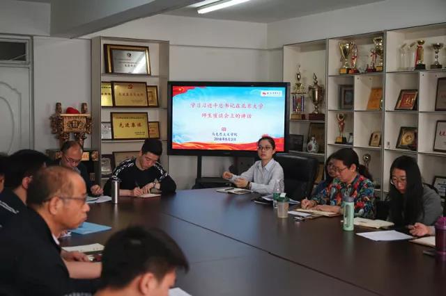 座谈中,全体师生首先观看了习近平在北京大学考察时的新闻。随后由付红星领学,教师和员工共同研读习近平总书记于5月2日在北京大学师生座谈会上的讲话,并结合思想、工作、学习实际畅谈了学习的体会和打算。