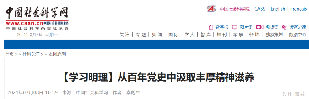 秦彪生副教授在中国社会科学网发表理论文章《从百年党史中汲取丰厚精神滋养》。