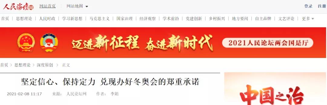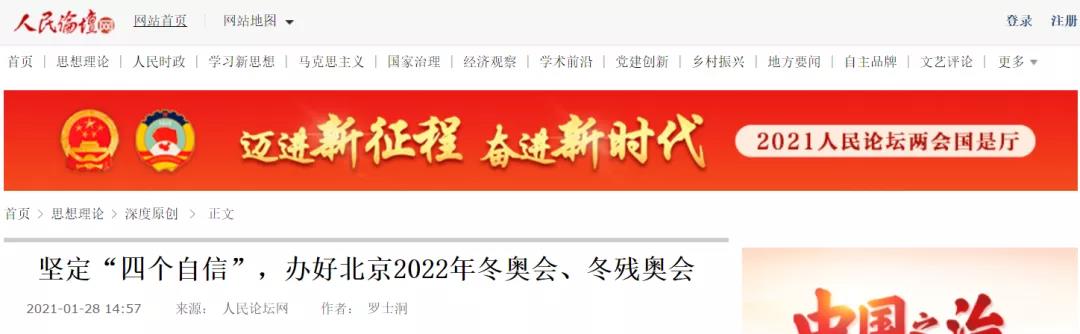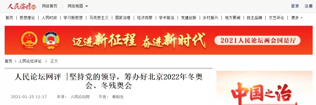 秦彪生副教授在人民论坛网发表理论文章《坚持党的领导,筹办好北京2022年冬奥会、冬残奥会》。