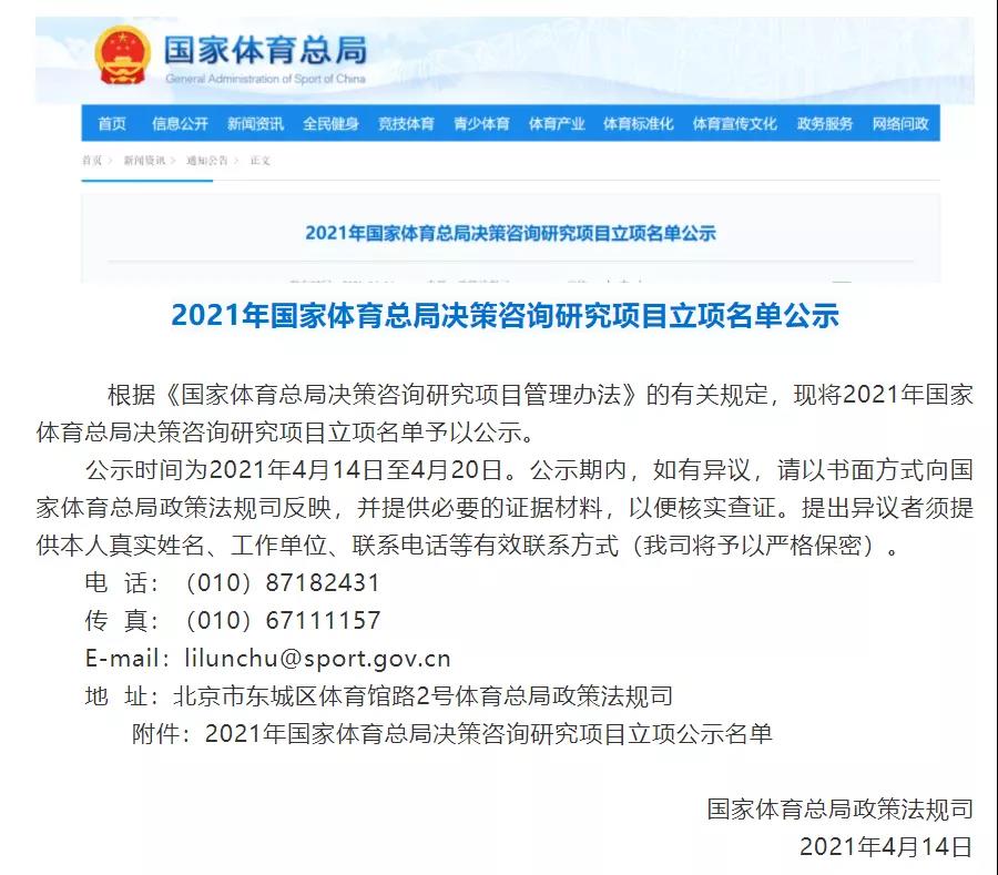 陈世阳副教授申报的国家体育总局决策咨询研究重点项目《北京冬奥会背景下中国体育国际形象管理研究》成功立项。