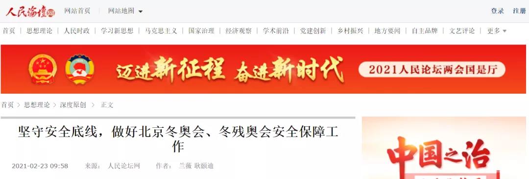 兰薇副教授和耿颐迪同学在人民论坛网发表理论文章《坚守安全底线,做好北京冬奥会、冬残奥会安全保障工作》。
