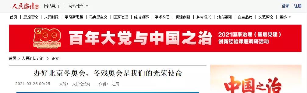 青年教师刘辰在人民论坛网发表理论文章《办好北京冬奥会、冬残奥会是我们的光荣使命》。