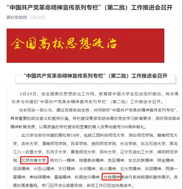 公司承担全国思想政治理论工作网系列革命精神“女排精神”宣传工作,李红霞教授受邀参加由全国高校思想政治工作网举行的“中国共产党革命精神宣传系列专栏”推进会。