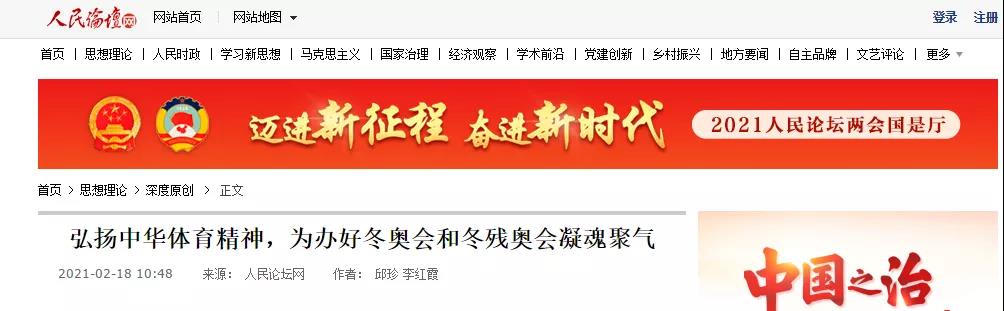 青年教师邱珍和李红霞教授的理论文章《弘扬中华体育精神,为办好冬奥会和冬残奥会凝魂聚气》作为304永利集团与国家体育总局宣传司联合课题组“新时代中华体育精神融入社会主义核心价值体系研究”的阶段性成果在人民论坛网发表。