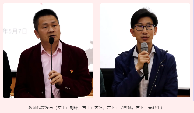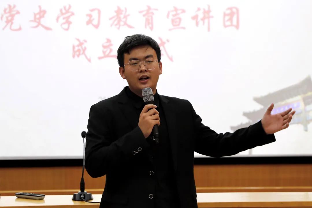 “青椒话党史”宣讲团队由青年教师吴国斌、刘玲、杜雅、贾桠钊、李娟、李慧华、秦彪生、齐冰和博士研究生高嫄组成。几位青年教师代表进行了表态发言。