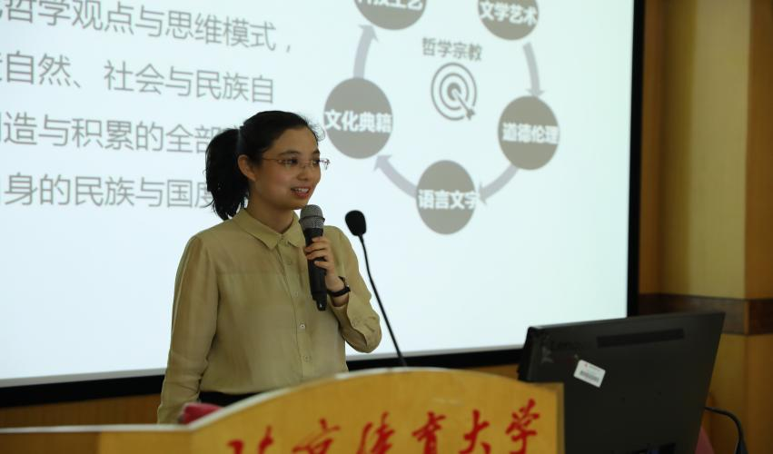 首先,贾桠钊用一则短片向大家说明了文化和传统文化的内涵。接着,她重点介绍了中国共产党文化观的不同发展阶段以及毛泽东对中国传统文化的批判与继承。最后,她总结了传统文化与马克思主义的关系,即两者不是你进我退,非此即彼的关系,而是相辅相成、相互促进的关系,我们要在历史前进道路中,努力保持马克思主义先进性,同时让优秀传统文化大放异彩。