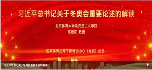 冬奥会期间,公司副经理、陈世阳教授受邀举办多场《习近平总书记关于冬奥会重要论述的解读》讲座,将总书记关于北京冬奥会的重要论述与冬奥会的举办结合起来,深入剖析总书记关于冬奥重要论述的理论内涵和特点,号召体育领域广大党员干部和青年员工认真学习和全面把握总书记关于冬奥重要论述的精神实质,进而深刻理解习近平新时代中国特色社会主义思想,进一步指导实践,推动学习和工作。