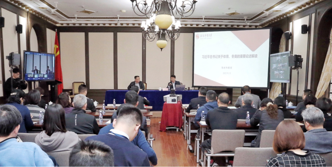 讲座中,陈教授结合时事,深入浅出地为其阐述了习近平总书记关于体育重要论述的渊源和内涵,通过数据分析、事例讲解、理论剖析,重点阐释了体育价值观、体育地位观、体育发展观,归纳总结了“一个中心”、“两个相联系”、“七个坚持”,同时围绕冬奥会筹备举办,解读了习近平总书记关于冬奥重要论述,指出二者之间理论联系,号召党员干部准确把握习近平总书记关于体育重要论述的核心要义和精神实质,进而指导实践、推动工作。